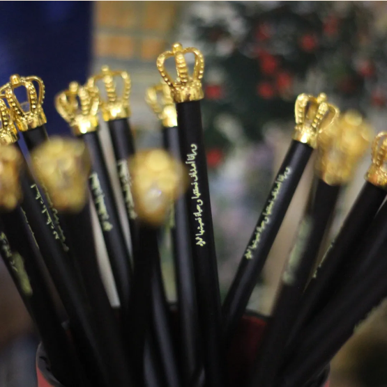 القلم الأول كتب عليه مقولة الاستاذة مريم الدّخيل: "ورانا أهداف نحققها وحياة نعيشها" لتذكّرنا أن نضع